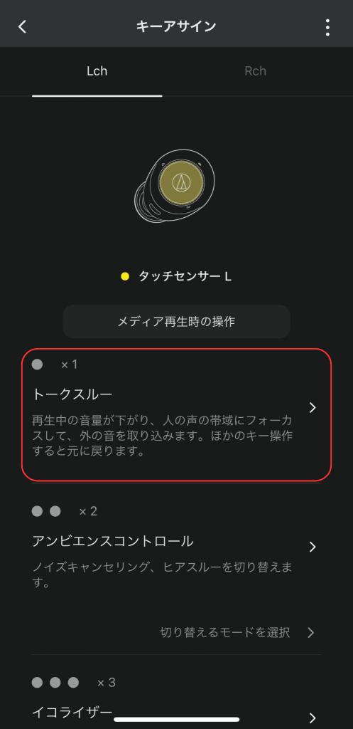 トークスルー機能は、人と会話する際や公共交通機関でのアナウンスを聞きたいときに再生中の音楽などの音量を下げて外音を拾ってくれる機能です。