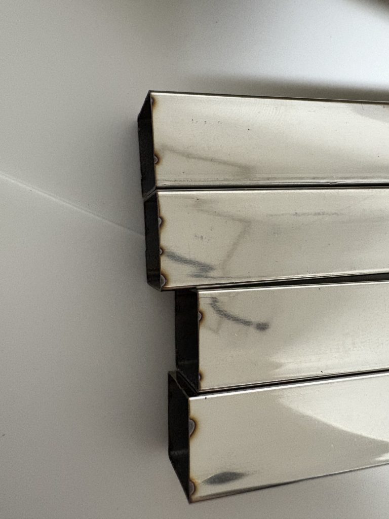 パイプには溶接熱による変色みたいなものがみられますが、ここは接続するところになる見えることがないので特に問題はないかと思います。