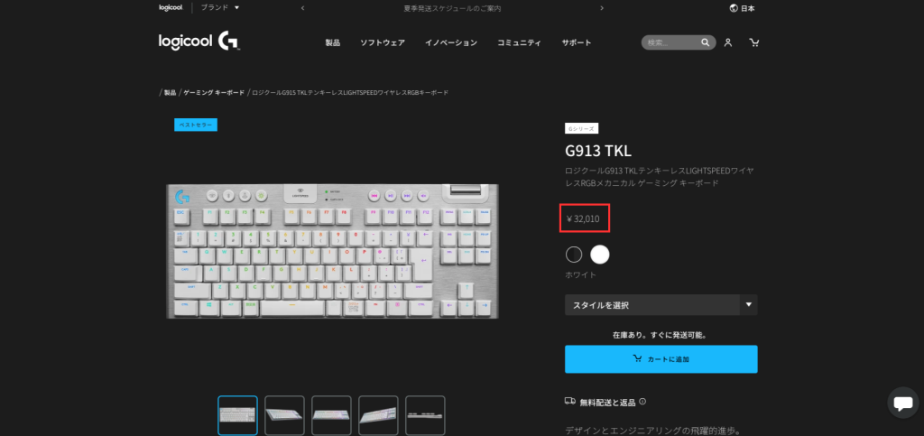 2024/08現在も公式サイトでは新品32,000円とお高い値段のキーボードです。私が購入した時は28,000円くらいだったと思うのですが、値上がりしているようです。