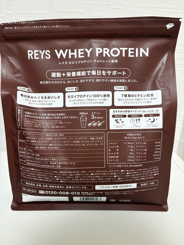 REYS(レイズ)ホエイプロテイン チョコレート風味レビュー