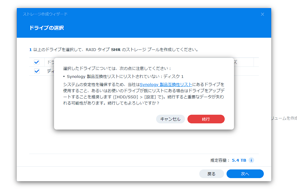 互換性の無いHDDを利用しようとすると警告が出ますが、通常利用はできました。