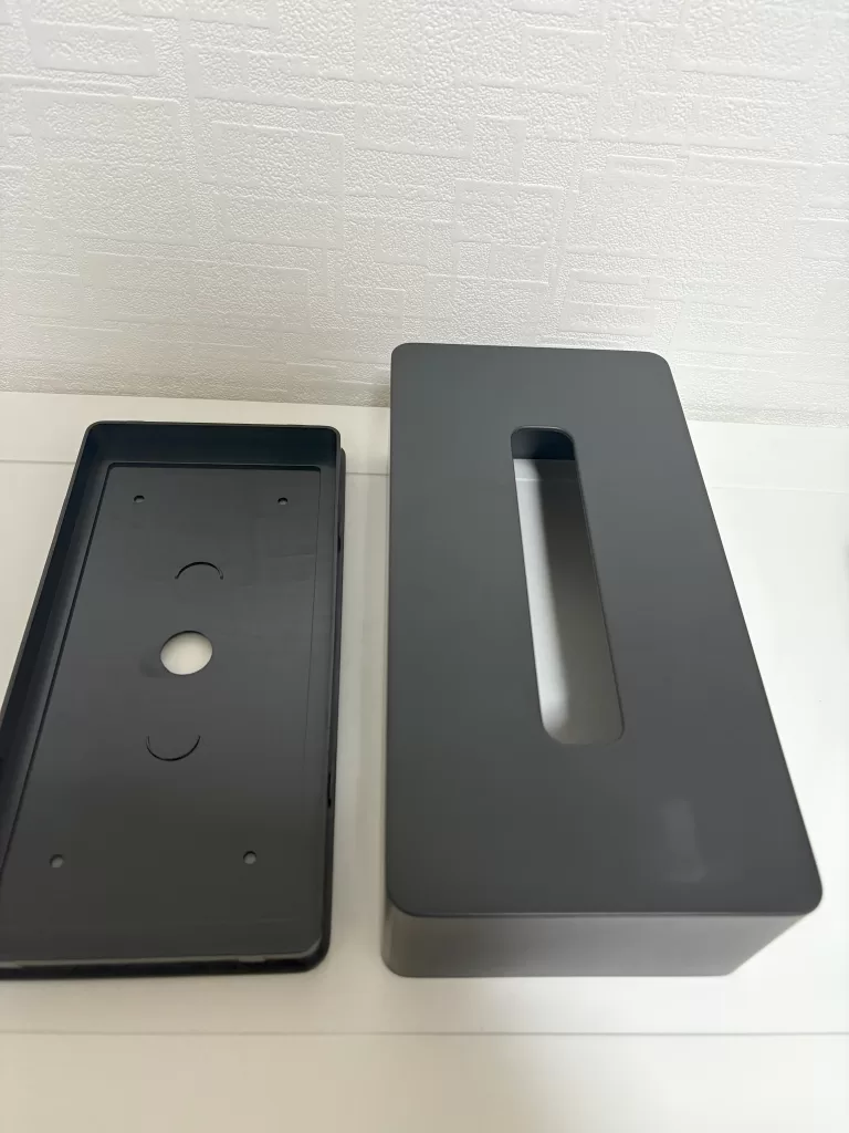 私は黒を購入したのですが、ABS樹脂と呼ばれるプラスチック素材でできていますので、100均みたいなチープさはないですが、よくよく見て触ってみると安っぽい印象は受けます。